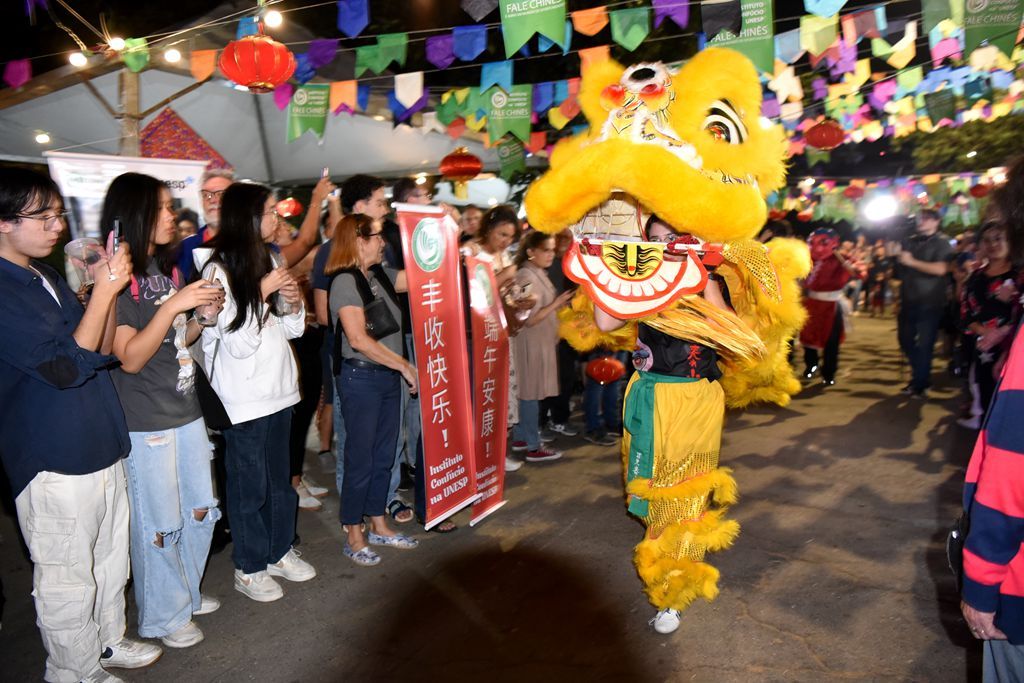 当地时间6月22日晚间,巴西圣保罗,圣保罗州立大学庆祝中国端午遇到巴西丰收节活动。图为巴西龙狮团体表演。(图片来源:中新社)