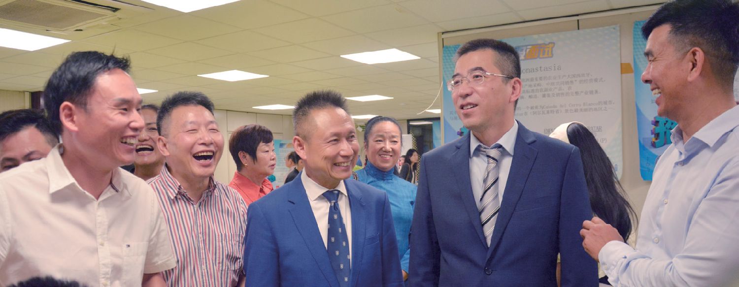 知华讲堂荣誉主席马塞洛与青田同乡会会长朱晓海和企业代表现场合影。