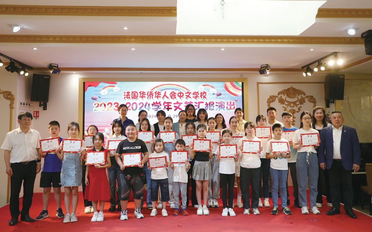 表演结束后,蔡君柱、陈丰华及参加活动的法国华侨华人会会长团成员还向学生们颁发了奖状。