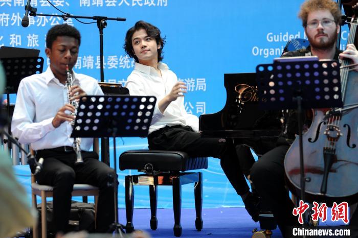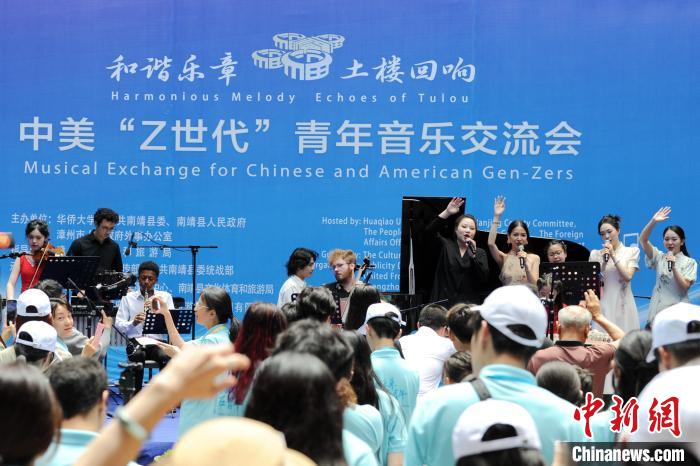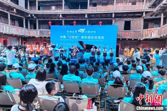 7月9日,“2024福建中美青年交流营”活动之“和谐乐章 土楼回响——中美‘Z世代’青年音乐交流会”在中国福建省漳州市南靖县田中赋景区举行。南靖籍旅美青年钢琴家阮扬扬等五名音乐家,携手南靖当地音乐爱好者,将西方古典音乐与东方美学相结合,呈现了一场极致的视听盛宴。