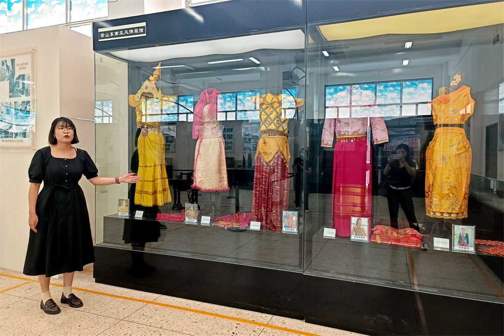 图为常山华侨博物馆内展示东南亚风情服装。(图片来源:中新社)