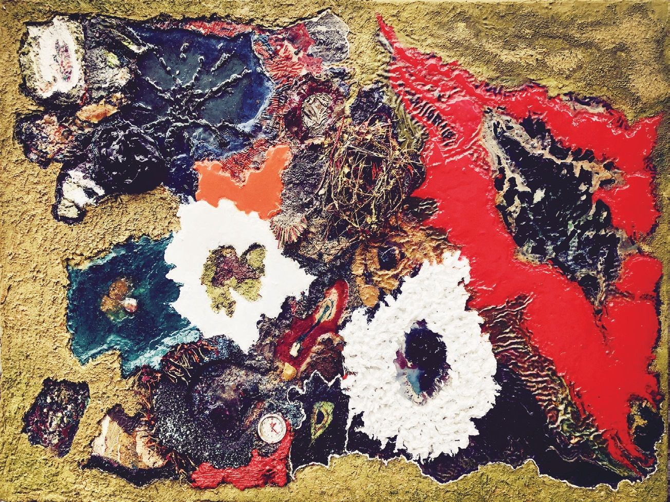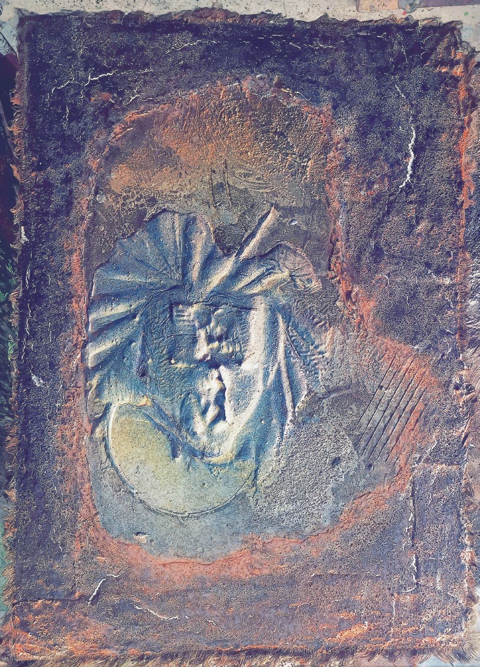 在川美就读本科或硕士那些年里,我一直在私下探索。我觉得,只有在材料上真正随心所欲,才能充分体现思想的自由性。我的材料既可用笔,用刀,用喷枪,亦可用电动工具塑形,做成年代久远的布面浮雕油画等。我的作品和具象毫无半毛钱关系,没那么lan(懒?滥?)。我不大讲究造型,尤其对着照片画。当然它们也绝非通常惯称的抽象或流体画,毕竟那太过时亦很低端。特别是流体,大多数出来的结果只能称为工艺品。在我看来,当代艺术最主要的点当在从可控到不可控间,这其中的度非常重要,专业多些则可控多些,而这恰恰又是致命的。