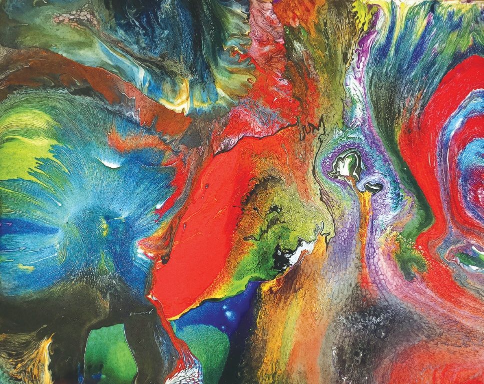 怎么说呢,它不过是一幅幅色域与色块间组合,有些点线面存留和蔓延罢了,大多数时候则表现为粗野无序。尤其在疫情频仍,冷战、热战纷乱交织,紧接着又陷入大小拥核国不断提出核威胁的当前时代,对陷入精神高度重压、情绪极端焦虑的地球东西方居民,我利用该作品提出某种“末世”概念,带有废土美学的明显特质。我借助脏损破毁等创意,以近乎粗野无序的技巧,甚至用高温枪来灼烧画面。自俄乌、巴以战争爆发以来,曾有专业媒体预测,当下将是一个“丧”艺术流行时代。这也是我一直尤为认同和刻意探求的风格,然而要达到此目的,就必须在媒材上不断地变革创新。