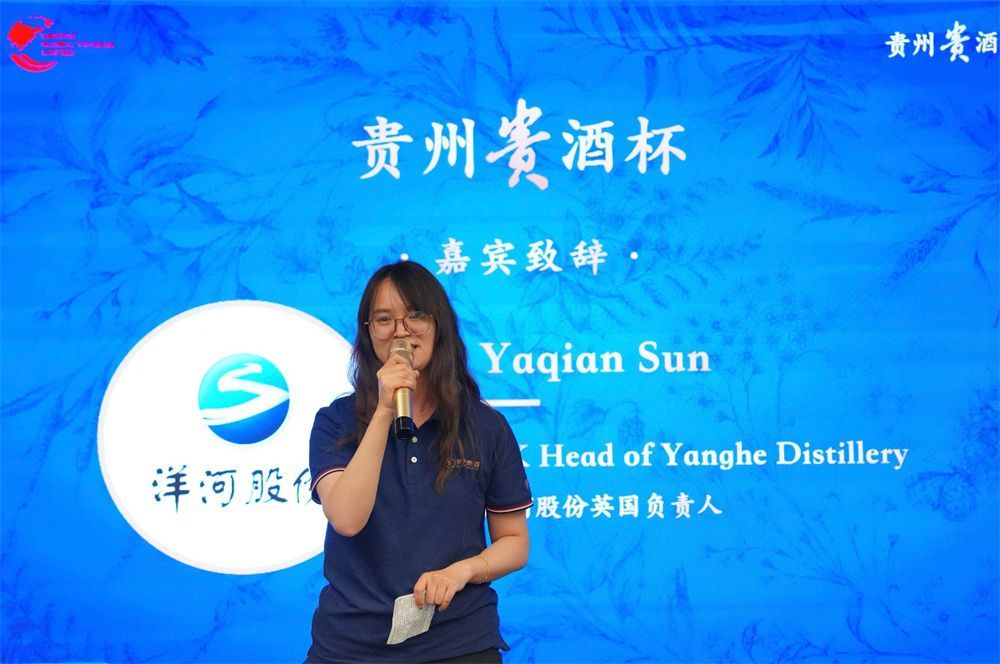 洋河股份国际贸易事业部孙雅倩在颁奖仪式中介绍贵州贵酒。