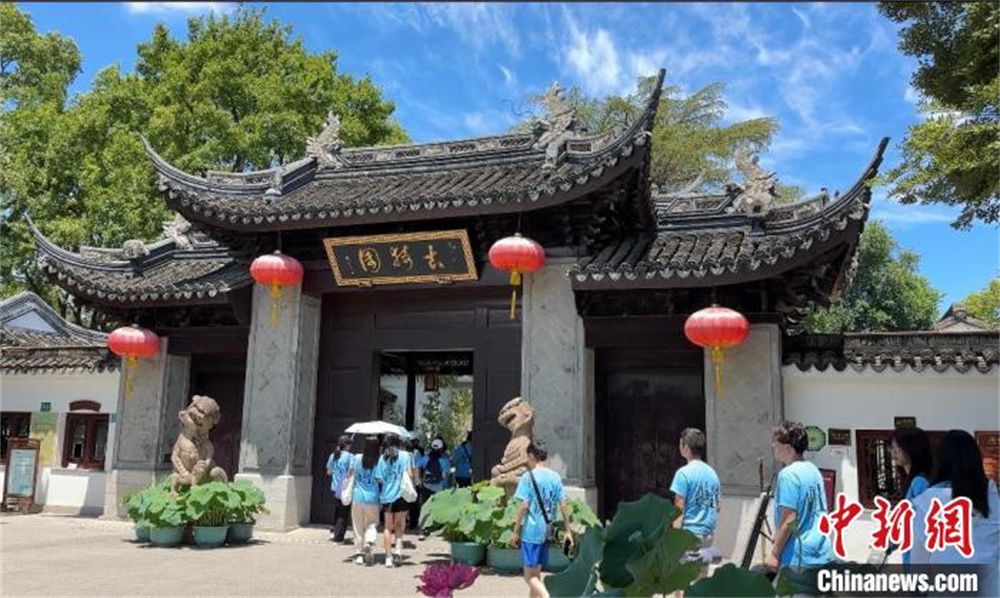 法国华裔青少年走进上海古猗园。(图片来源:中新网)