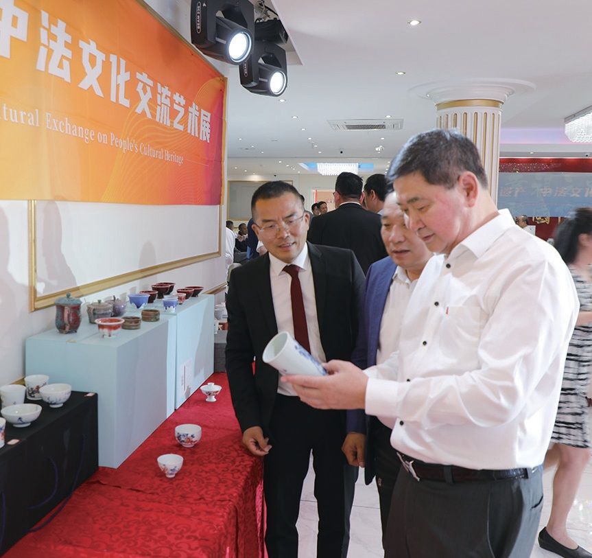 这次展览由法国中国和平统一促进会和江西省陶瓷行业协会、China陶瓷频道共同主办,海南万茗堂承办。在7月25日于巴黎国际大酒店举办的展览开幕式上,法国华侨华人会主席蔡君柱、欧洲时报前社长张晓贝以及旅法侨界、艺术界、文化界、旅游届、收藏界代表出席开幕式。法国和统会常务会长兼会务长刘小慧主持开幕式,常务会长兼秘书长张常豹代表正在中国出差的王加清会长致辞,欢迎和感谢来法举办中国陶瓷精品展。他表示,拥有2000多年冶陶史的景德镇随海陆丝绸之路交流,以“瓷文化”作为人类文明互动的使者,成为中国走向世界、世界认识中国的一个重要窗口。陶瓷也见证了中法两国深厚友谊,也成为中法友谊的桥梁。这次展览带来诸位陶瓷大师的最新力作,希望大家能够通过本次展览欣赏到瓷器的永恒之美、中国工匠精神的创新之美以及艺术超越国界的非凡魅力。