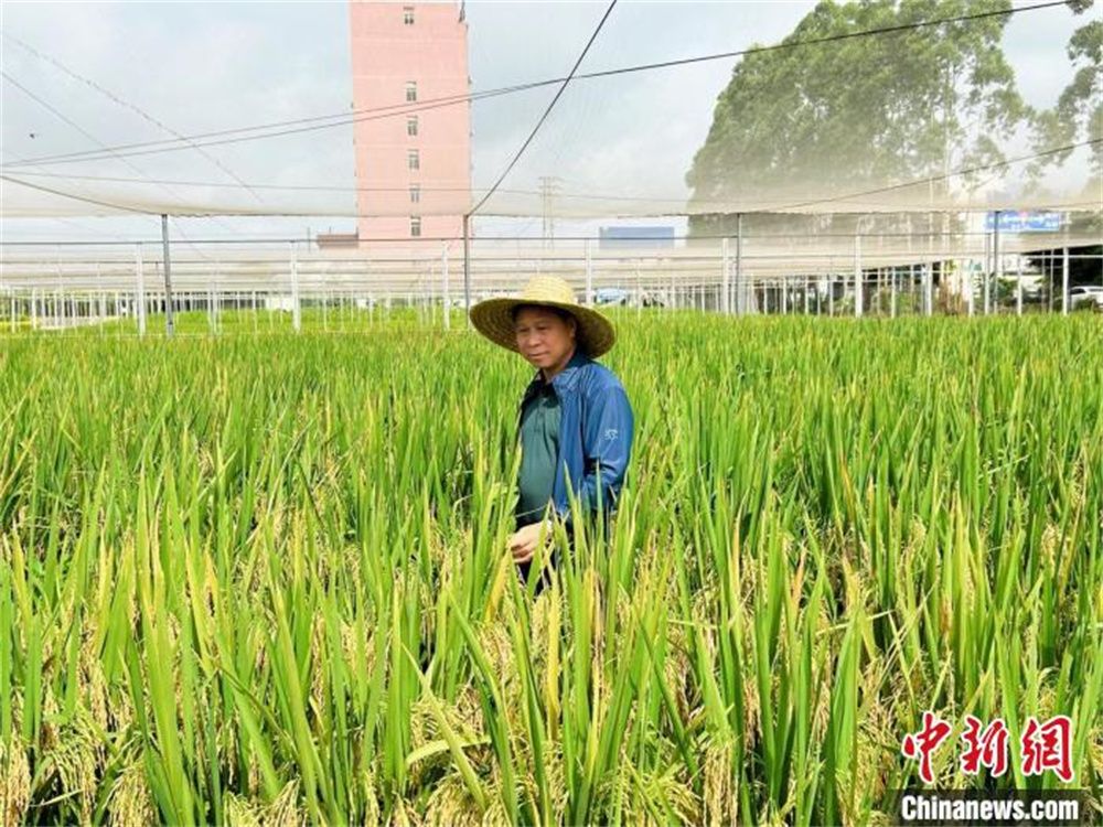 2023年7月,吴全满在查看水稻种植情况。(图片来源:受访者供中新网)