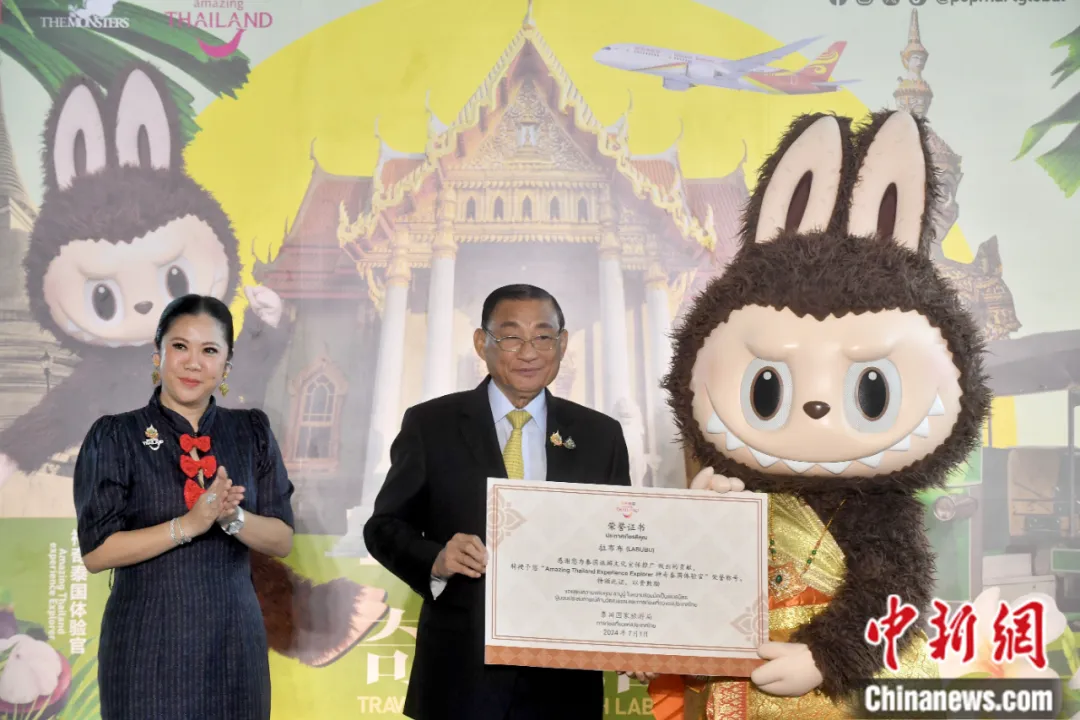泰国官方为LABUBU举办欢迎仪式,并授予其“神奇泰国体验官”荣誉称号。(图片来源:泰国国家旅游局供中新社)