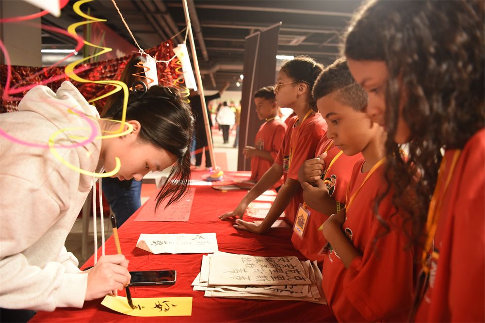 当天,安年比会展中心座无虚席,文化广场和美食集市人头攒动。3位巴西中医学院的“洋中医”为民众施展医术,圣保罗州立大学孔子学院手工坊迎来体验剪纸的小观众,侨界书画名家李忠信和唐韵中巴文化艺术学校的书法新秀一同展现笔墨神韵。