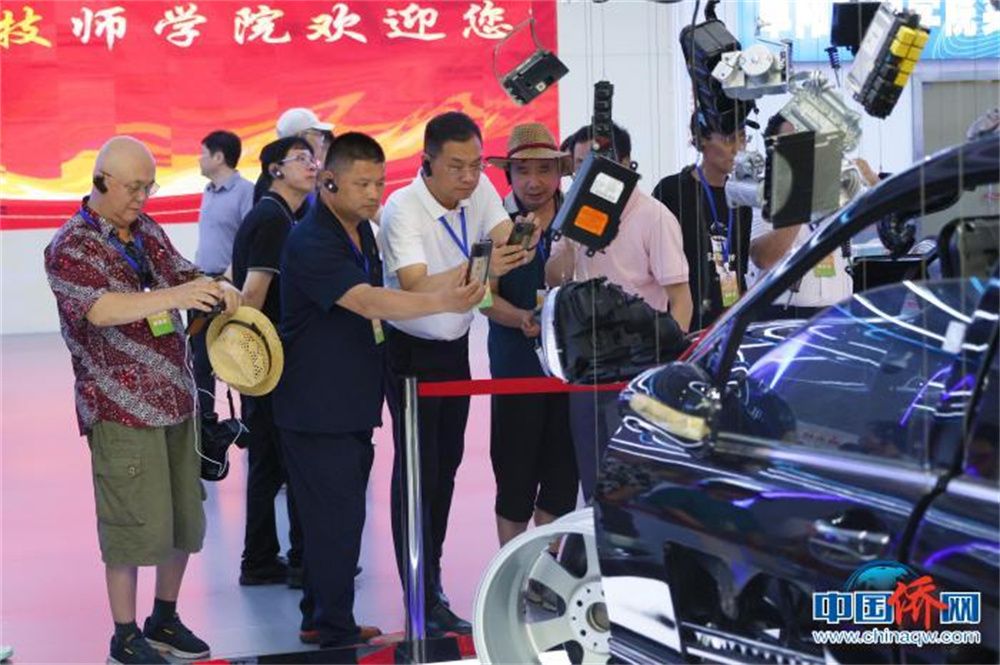 海外华文媒体代表在阜阳技师学院参观汽配作业线。