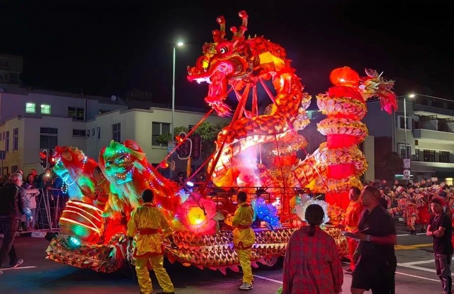 2024年开普敦嘉年华中华人方阵的龙灯花车。