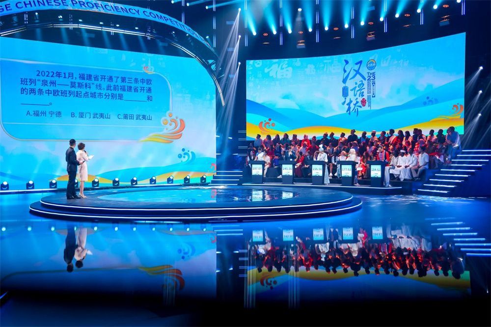 活动开场,首先通过以“桥见五福”为主题的先导片,对本届“汉语桥”比赛进行全程回顾。紧接着全球30强选手共同亮相,5名洲冠军融合福建各地非遗表演,说出自己的参赛宣言。在选手们倾情唱响的《汉语桥》歌声中,总决赛拉开了帷幕。