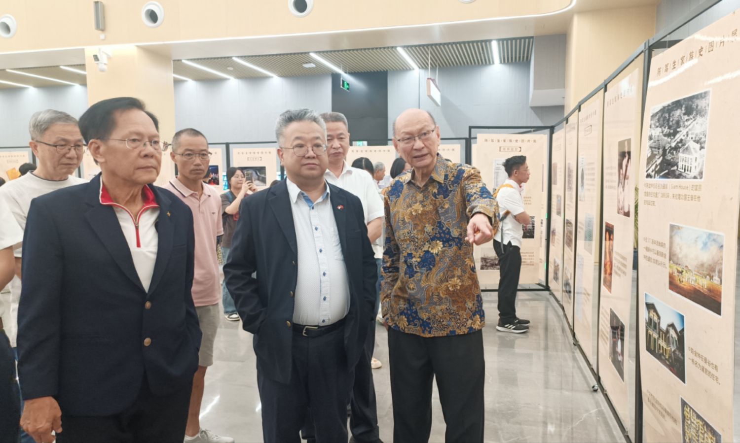 图为陈笃生家族成员及新加坡学者等参观陈笃生家族史图片展。(图片来源:本文图片均来自中新社)