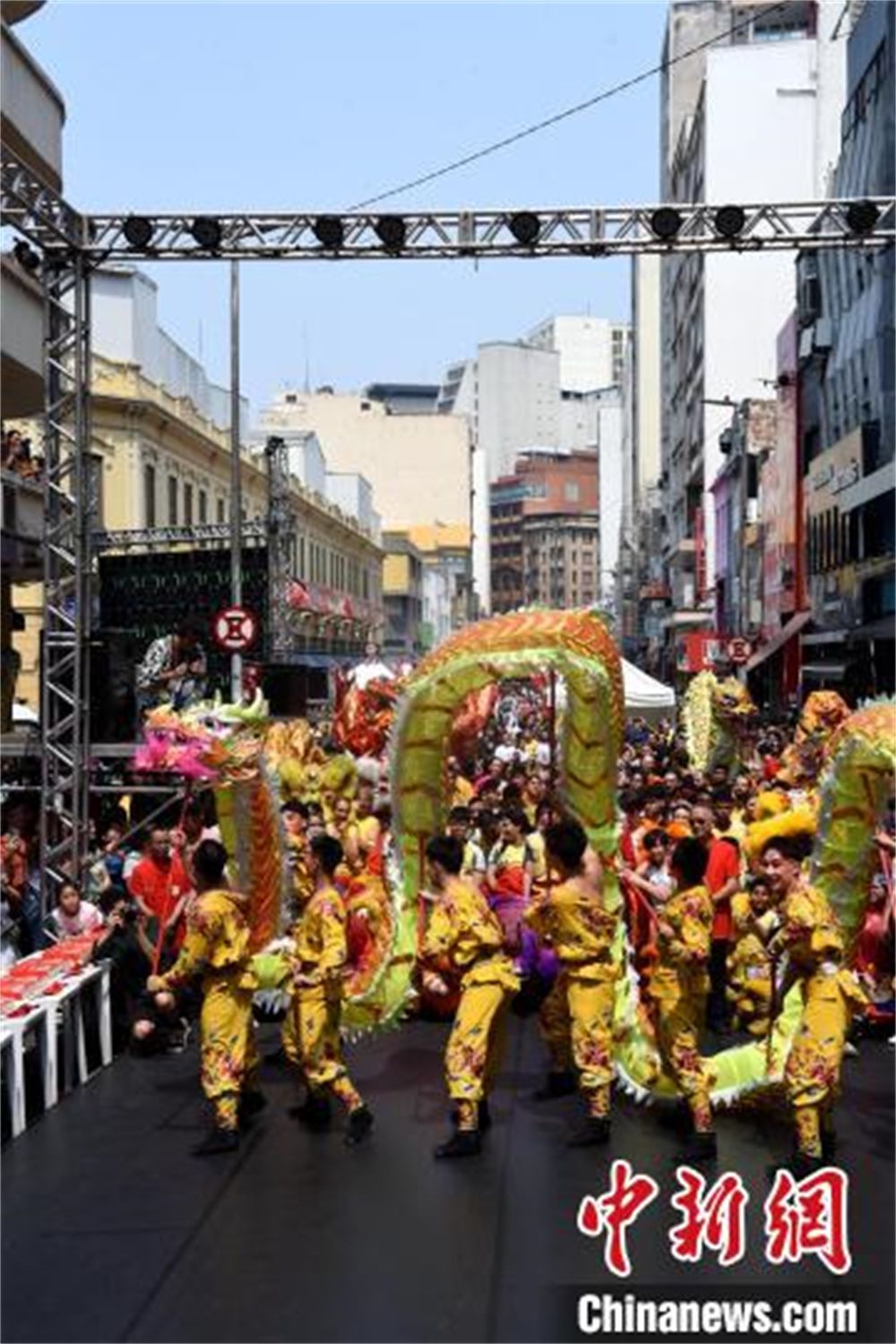 当地时间9月14日,巴西圣保罗25街,中秋嘉年华活动上浙江婺剧团表演九节龙。(图片来源:本文图片均自中新网)
