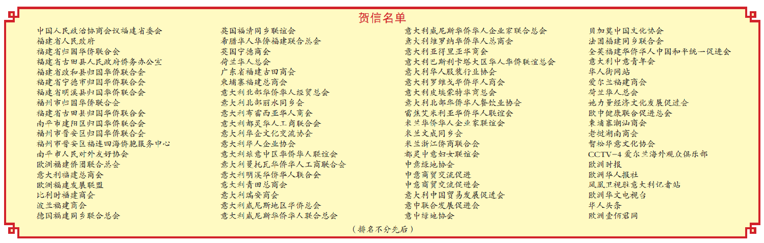 意大利福建侨商联合会维琴察区域会长李传钦宣读了福建省侨联的贺电名单。