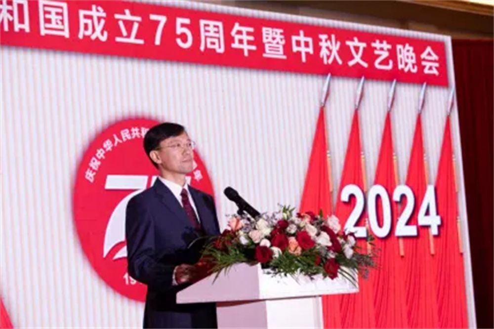 管仲奇代总领事在晚会致辞中表示,中秋佳节是中华民族最重要的传统节日之一,在这个重要而美好的时刻,领区侨界以文艺晚会这种极具中国特色的形式庆祝传统佳节,迎接中华人民共和国成立75周年,充分体现了海外侨胞爱国爱乡的优良传统和团结奋进的良好风貌。