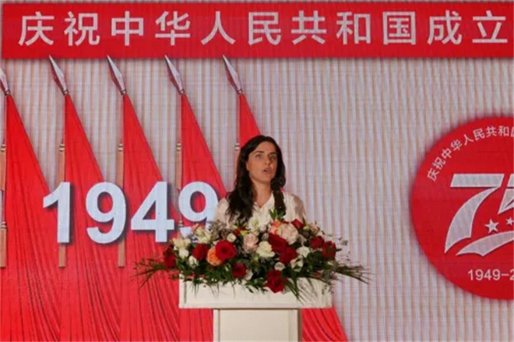 冈比市长代表、友城国际合作与环境局长康塞塔•皮齐鲁索致辞。(图片来源:伍敏摄)