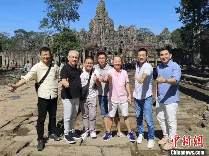 申蛟龙(右二)与印尼商界代表考察柬埔寨旅游景点。