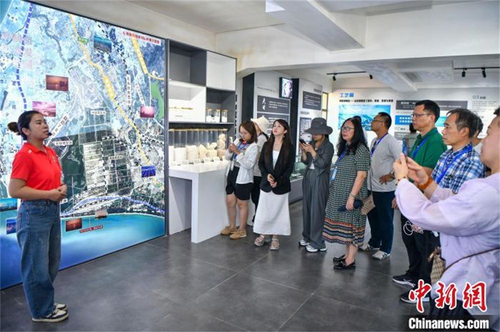 9月25日,海外华文媒体人士参观海南乐东莺歌海盐场海盐文化馆,了解当地盐文化。(图片来源:中新网)