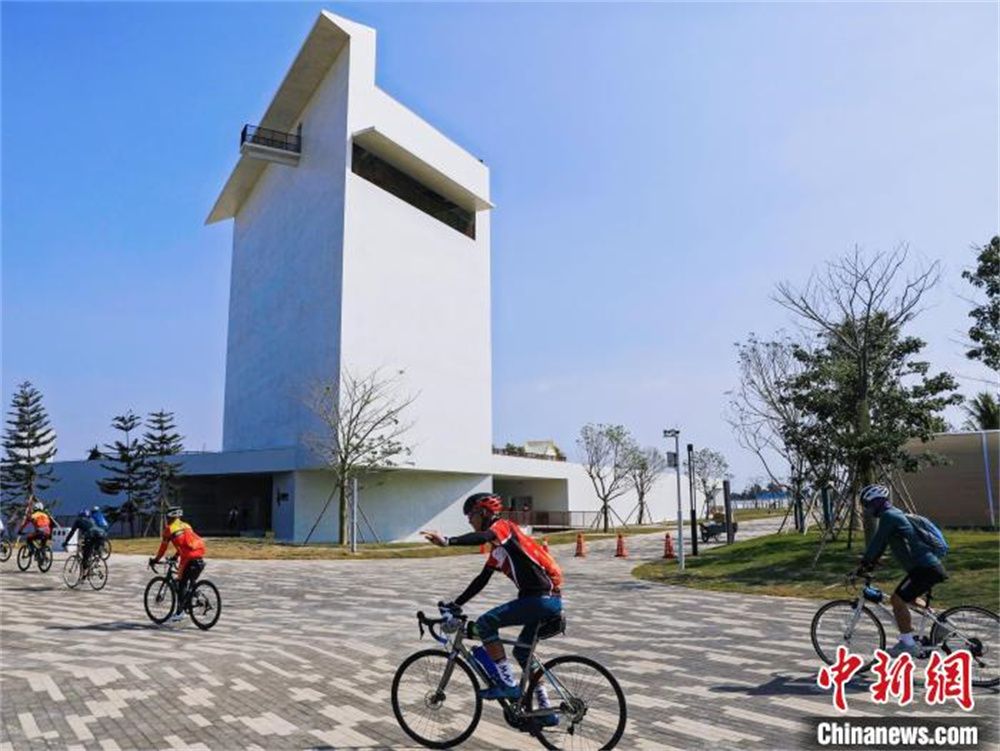 资料图为2024年2月19日,海南环岛旅游公路乐东路段莺歌踏浪驿站引来诸多骑行爱好者在此停留。(图片来源:徐伟供中新网)