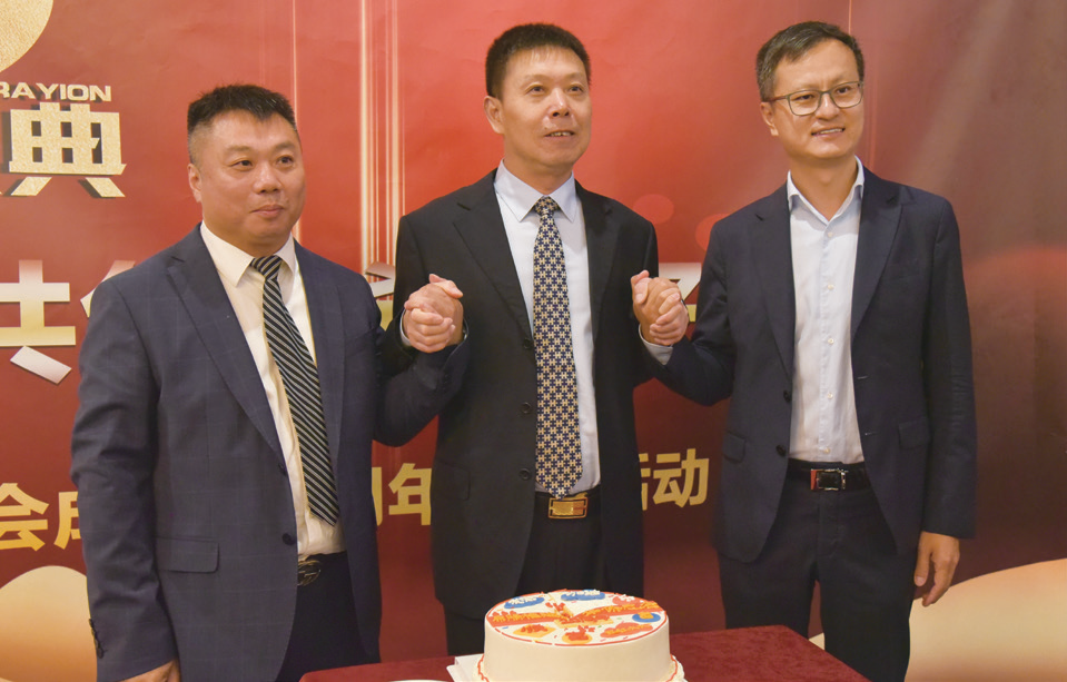 陈锋、黄进发、郭晓宇与嘉宾分享生日蛋糕。