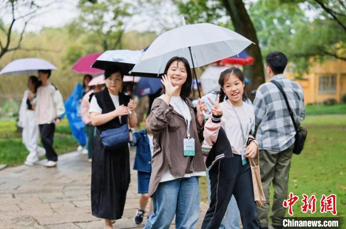 参加总决赛的孩子们游览梅雨潭景区。(图片来源:本文图片均自中新网)