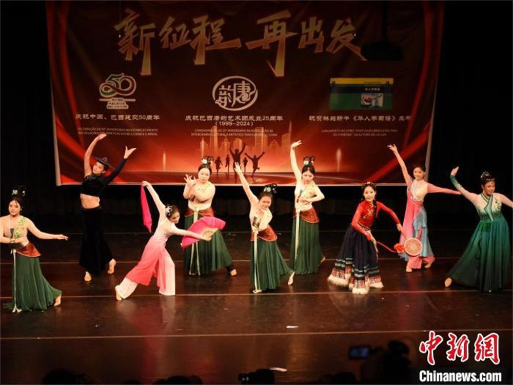 《华人学葡语》新书发布、书画艺术展、歌舞晚会……当地时间23日晚,巴西唐韵艺术团25周年庆典在巴西圣保罗文化艺术中心举行。