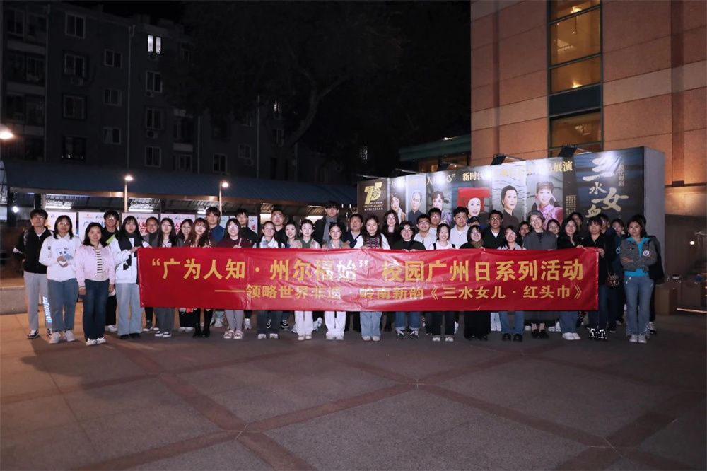 粤剧上演期间,广州市人民政府驻北京办事处开展“广为人知·州尔福始”——走进精品粤剧、讲好湾区故事的活动,邀请逾百名高校学子观看粤剧。图为观看粤剧的学子合影。