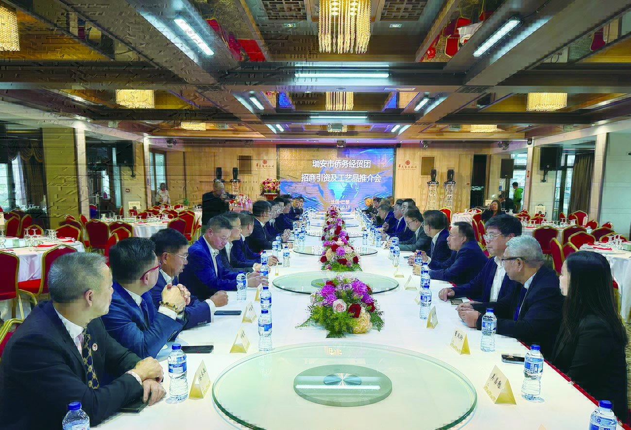 推介会由瑞安市侨联主席罗晓伟主持。推介会上播放了瑞安市的宣传片,旖旎风光加上经贸的高速发展,令出席的侨领怦然心动。瑞安市文化和广电旅游体育局党委书记谢骁以“山海画卷·书香瑞安”对瑞安市进行了全面推介。瑞安市东山街道党工委书记刘晓光对东山街道、瑞安市高楼镇党委书记陈凡对高楼镇的营商环境、工农业发展、对外经贸等方面进行了重点推介。