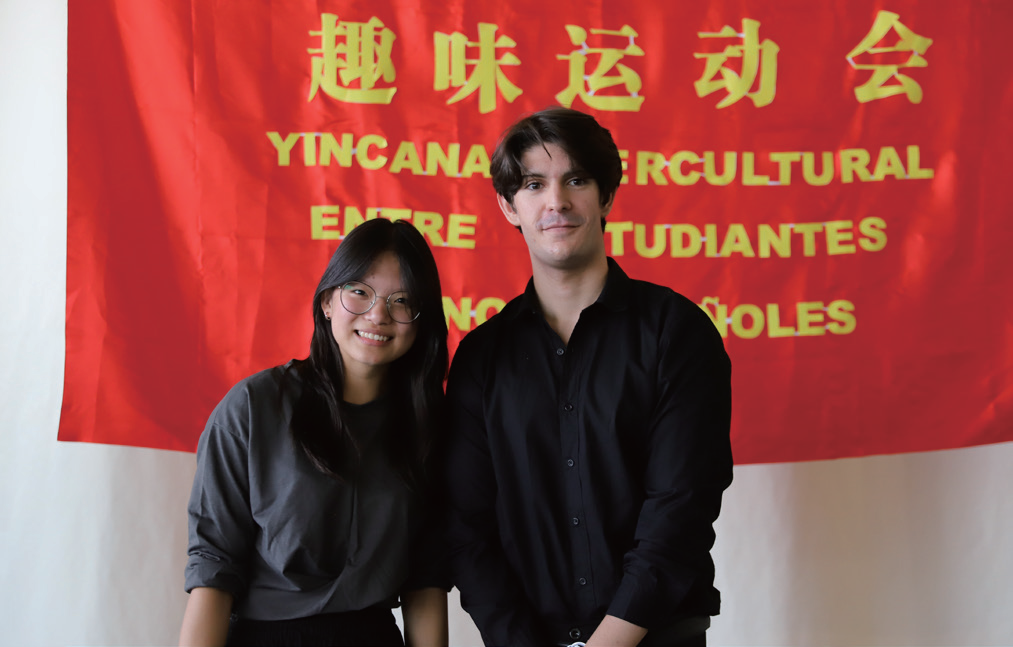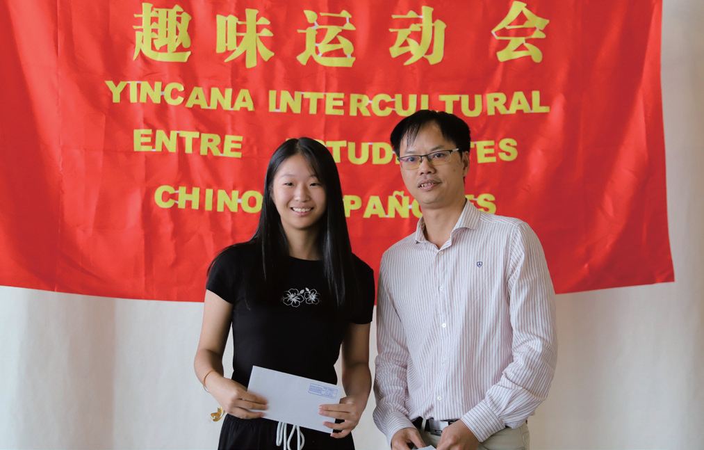 西班牙伊比利亚-中国文化基金会旅游、青年和营销总监小龙(右)为幸运奖获得者颁奖。