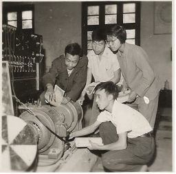 陈清泉在北京矿业学院电机实验室指导学生。
