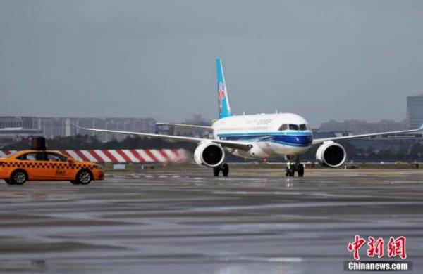资料图:南航首架C919国产大型客机成功首航上海。(图片来源:本文图片均来自中新社)