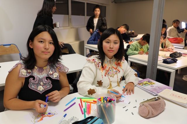 中国电视报道,活动中播放了不久前在中央广播电视总台综艺频道播出的《衣锦天下》特别节目,身着秀美汉服的仲月茹结合节目介绍了汉服的特点和演变过程,纹样的来源、组成和寓意,以及相关历史背景和独特的中华文化韵味。在仲月茹的讲解下,学生们在纸上描绘出不同纹样,既有龙凤呈祥的纹样,也有各类花卉的图案,有的学生还根据自己对色彩的理解,涂上各种各样的颜色,领略到在传统上创新的意味。