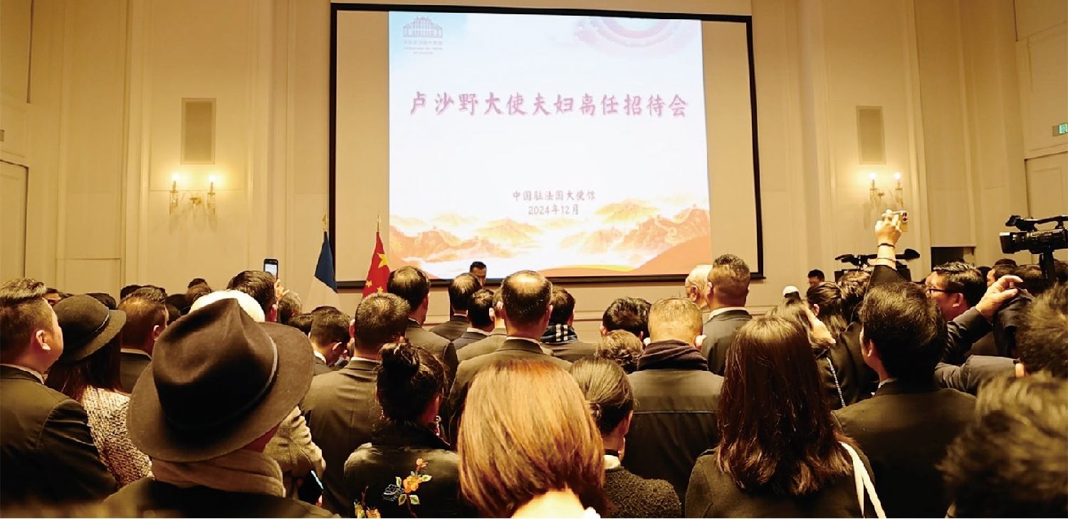 当地时间12月9日,中国驻法国大使卢沙野与夫人王立文在使馆举办离任招待会,来自旅法侨界、商界、学界、文化界、媒体届的代表高度评价卢大使五年来为中法关系发展的辛勤付出与卓越表现,500余名旅法各界华侨华人出席活动。