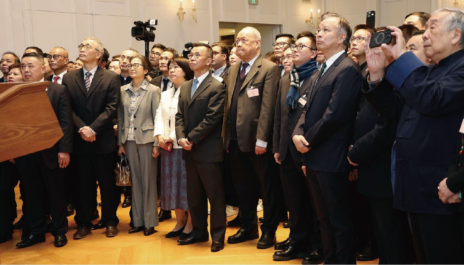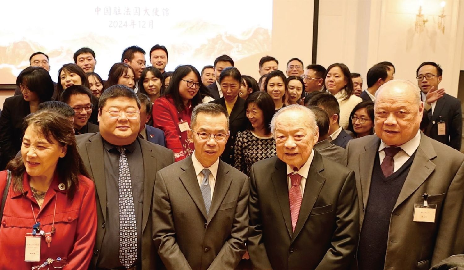 招待会上,全体与会人员还通过观看幻灯片的方式,回顾了卢沙野担任驻法大使期间的重要画面以历史性瞬间。会后,卢沙野大使夫妇与旅法华侨华人亲切合影依依话别。