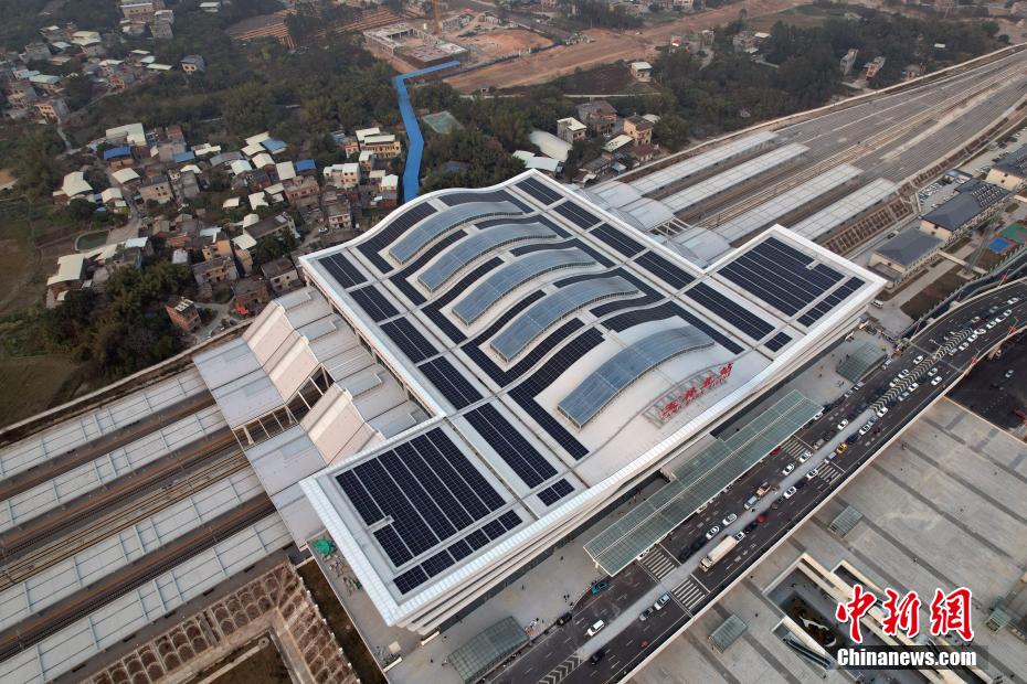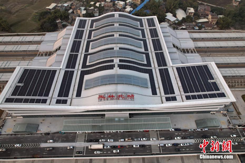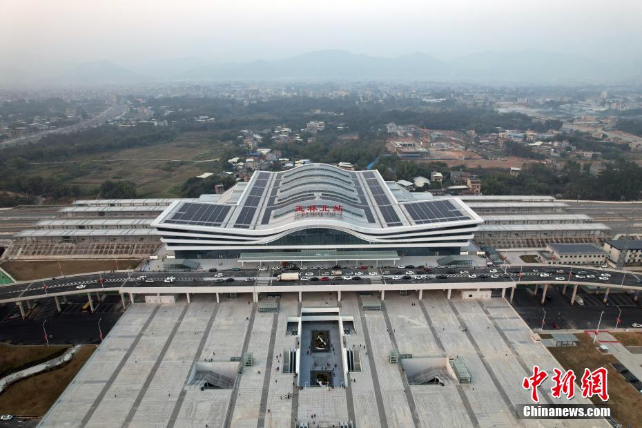 南珠高铁南宁至玉林段于12月30日正式开通运营,广西第一大侨乡玉林市开通高铁。图为航拍玉林北站。(图片来源:本文图片均自中新网)