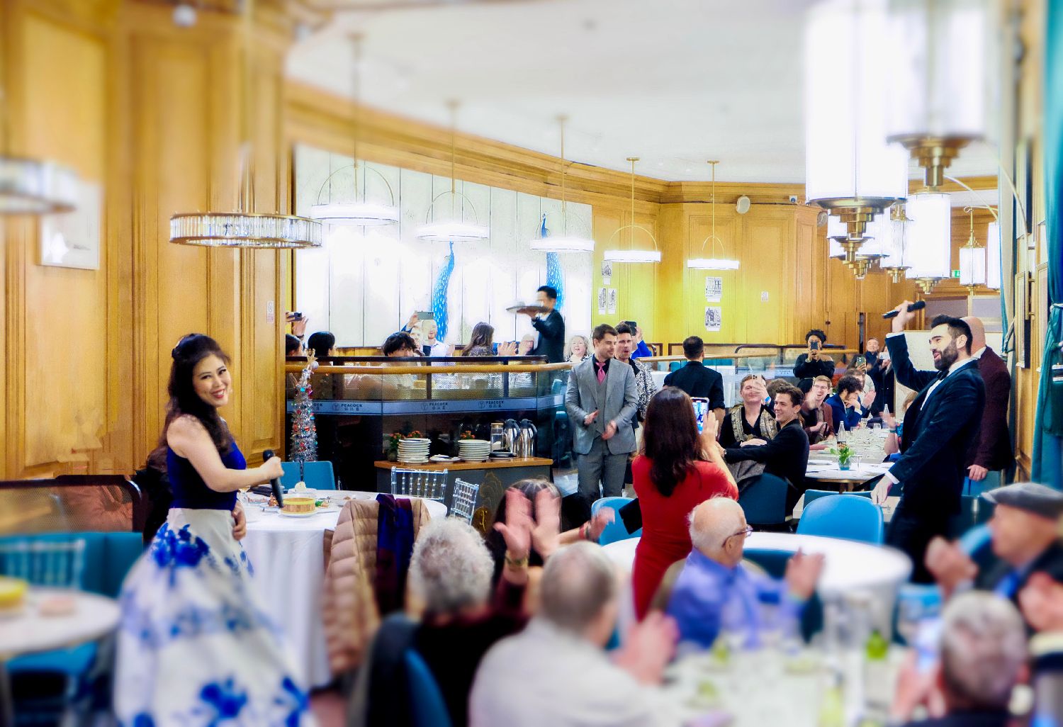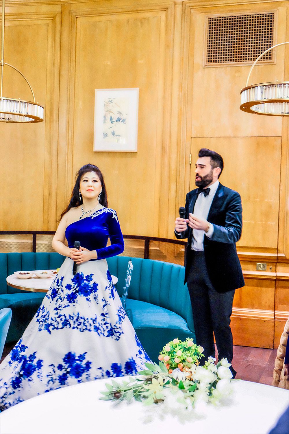后半场上演了一场别开生面的惊喜表演,美国大都会歌剧院著名男高音Roy Hage以快闪形式加入了王蓓蓓的演唱,他们合作了《茶花女》选段《祝酒歌》,在观众强烈要求下又演唱了第二遍,最后以合作演唱《告别时刻》为整个跨年烟花盛宴画上完美句号。两位艺术家完美诠释了东西方音乐的交融,以深情的演唱和辉煌的音色将晚会推向高潮。这场表演还吸引了来自美国的约50位音乐发烧友,他们专程飞赴伦敦,共同见证这场文化与艺术的盛会,并加入了《茶花女》选段的合唱部分,生动再现了歌剧里的场景。