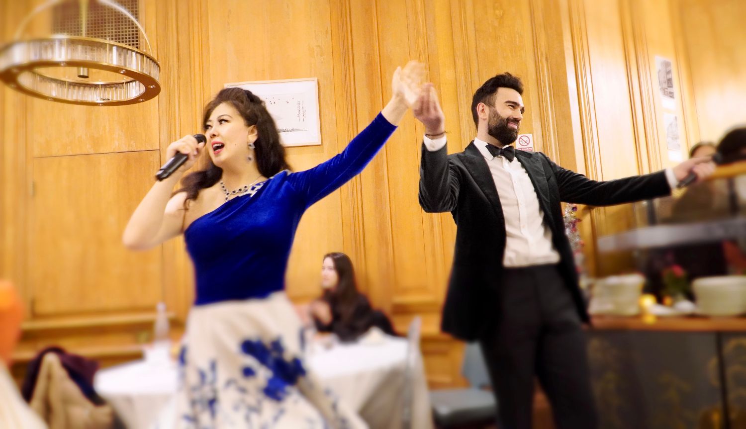 旅英女高音歌唱家王蓓蓓(左)和美国大都会歌剧院著名男高音Roy Hage(右)一起演出,将晚会气氛推向高潮。(图片来源:主办方供图)