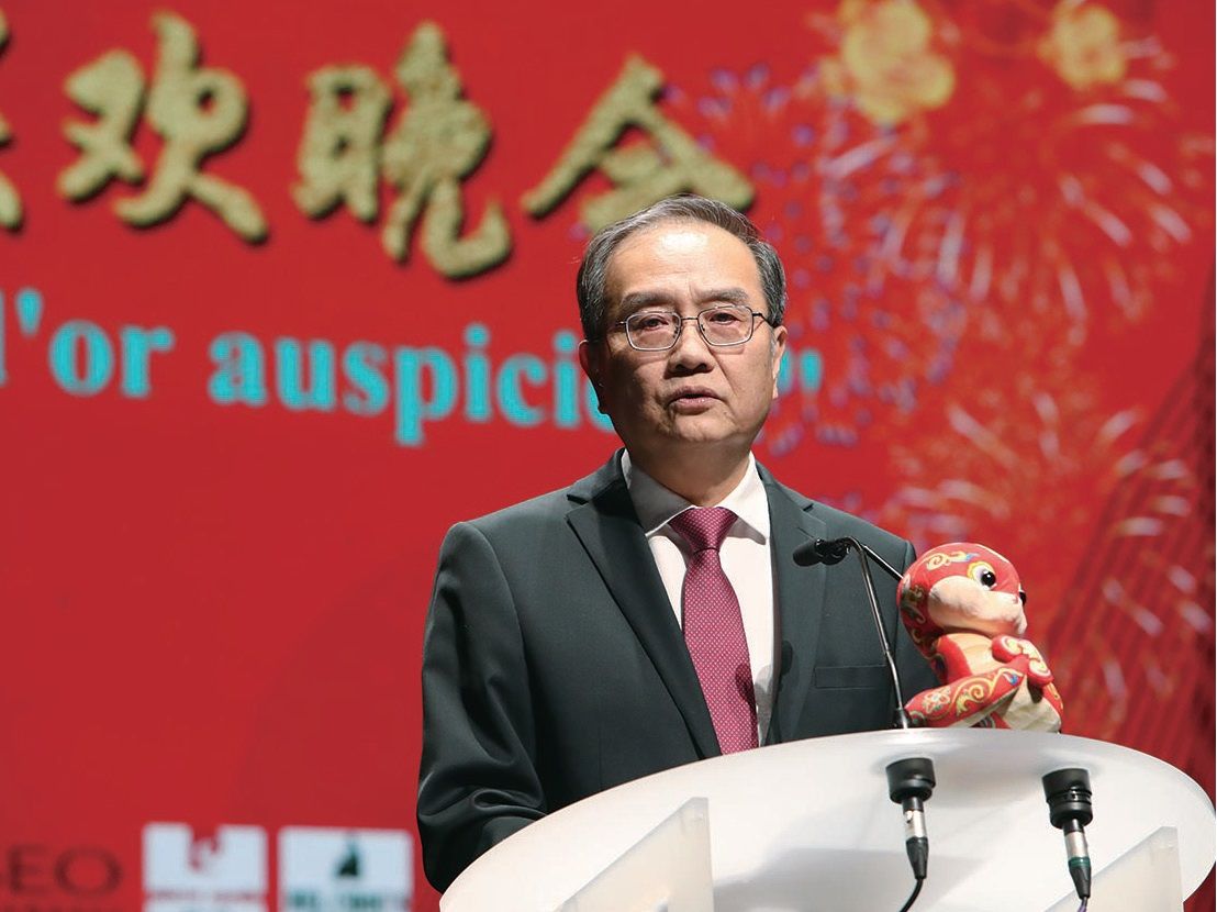 邓励在致辞中表示,共同庆祝春节成为法国一年一度的文化盛事,是中法文明交流互鉴、美美与共的生动体现。展望新的一年,期待中法坚持独立自主传统,继续走开放合作、共同发展道路,两国关系能越走越实、越走越近。中欧保持战略沟通,坚定伙伴认知,共同倡导多边主义,促进对话交流与开放合作。相信春节所蕴含的和平、和睦、和谐理念将在世界范围内得到更广泛认同,为世界和平稳定繁荣注入正能量,为推动构建人类命运共同体增添新动力。