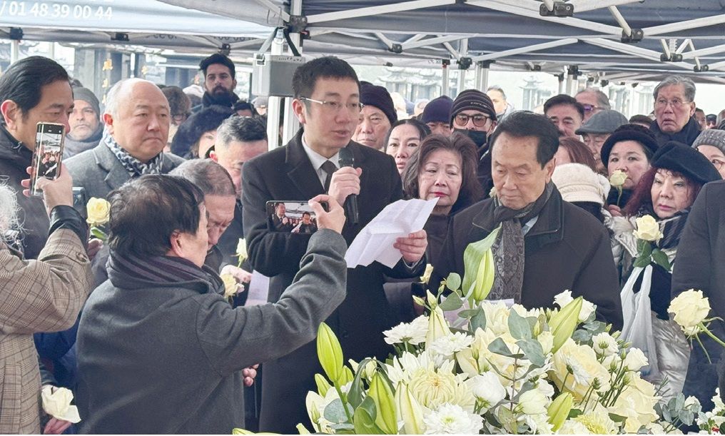 【欧洲时报记者黄冠杰巴黎报道】1月21日,旅法侨界在提埃(Thiais)巴黎华人墓园举行追悼会,向因病去世的法国广东会馆主席周吉庆遗体告别,缅怀其奋斗、贡献的一生。法国广东会馆执行会长马致远致悼词。中国驻法使馆领侨处万磊参赞、白鸽秘书,法国前国民议会议员陈文雄,巴黎13区政府议员陈家辉,法国华侨华人会主席蔡君柱、法国潮州会馆会长许葵、法国恒通集团主席唐晓华、法国“中国红”董事长陈东晓等中法各界代表及亲朋好友出席追悼会。欧洲时报社代表出席追悼会,对周吉庆不行辞世表示哀悼,向其家人表示慰问。