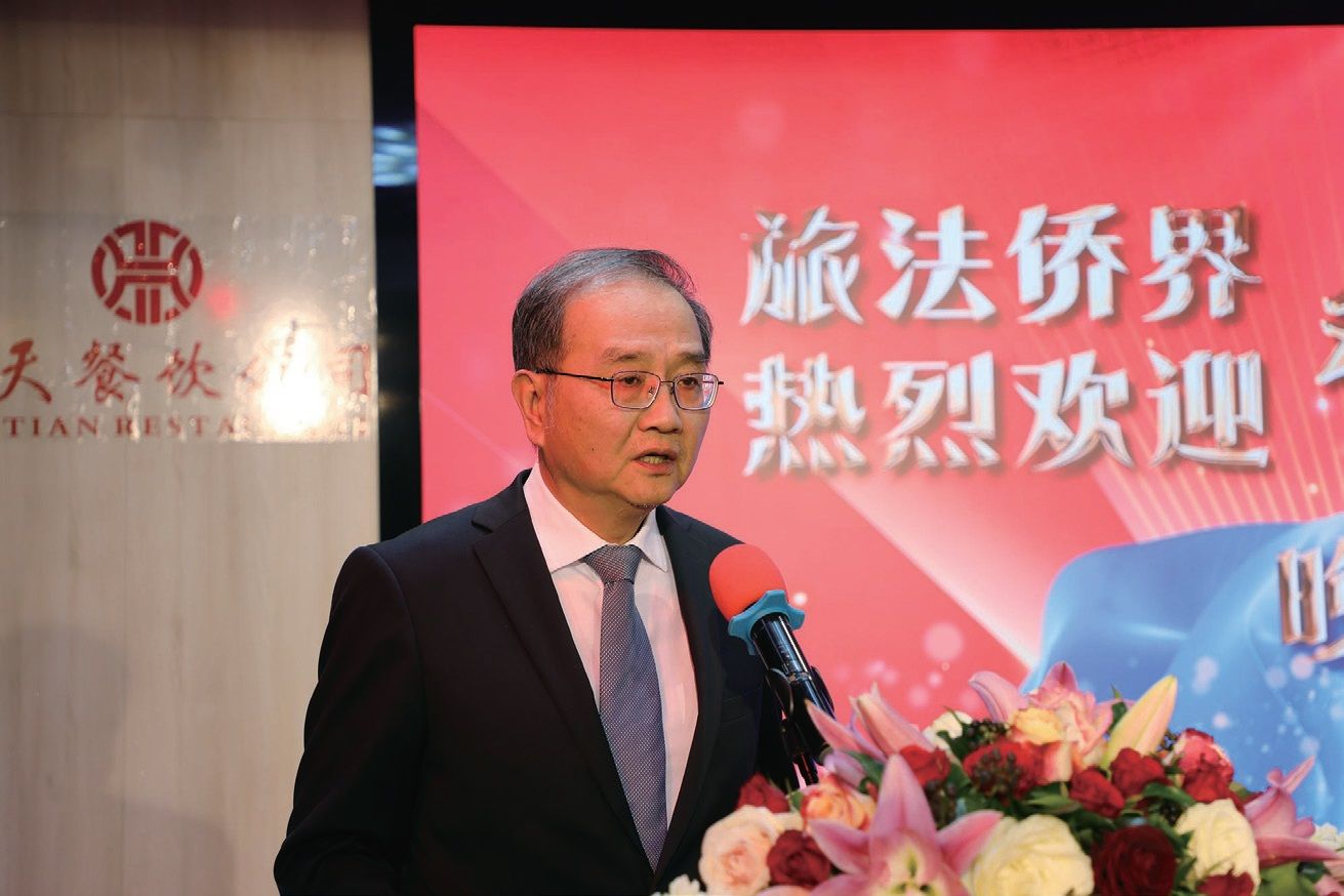 邓励和大家分享了一位他熟悉的老侨领的心路历程:这位侨胞刚来的时候,想的是自己怎么活,站稳了脚跟后,想的是孩子要怎么活,等孩子们成家立业了,想的是别人怎么活。所以他一直以来,扶贫济困、赈灾救灾,积极参与各类公益事业。邓励指出,他的经历在旅法侨胞中很具有代表性。旅法的侨胞把自身的发展融入了祖(籍)国的发展,融入了中法关系的发展,顾小家也顾大家,做出了非常积极的贡献。特别是在反独促统的斗争中,展现了中华民族捍卫主权和领土完整的强大的意志。在中法各项的交流合作中都有旅法侨胞的身影和贡献。多年以来,旅法侨胞一直在法国积极的宣介中国的传统文化,促进中法关系,是中法关系中的积极的力量,一种正能量。他勉励大家继续发挥各自独特的优势,为中法友好添砖加瓦。