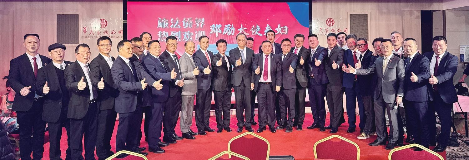 【欧洲时报记者黄冠杰巴黎报道】1月25日晚,旅法侨界在巴黎华天中国城大酒店举行仪式,欢迎邓励大使和夫人张华法国履新。邓励在致辞中高度评价旅法侨界为中法关系发展和中法友谊所做出的努力和贡献。他表示:“旅法侨界一直以来在法国积极的宣介中国的传统文化,促进中法关系。旅法侨界始终是中法关系中的积极的力量,一种正能量。”中国驻法使馆陈栋公使、陈力公使、万磊参赞等出席欢迎仪式。