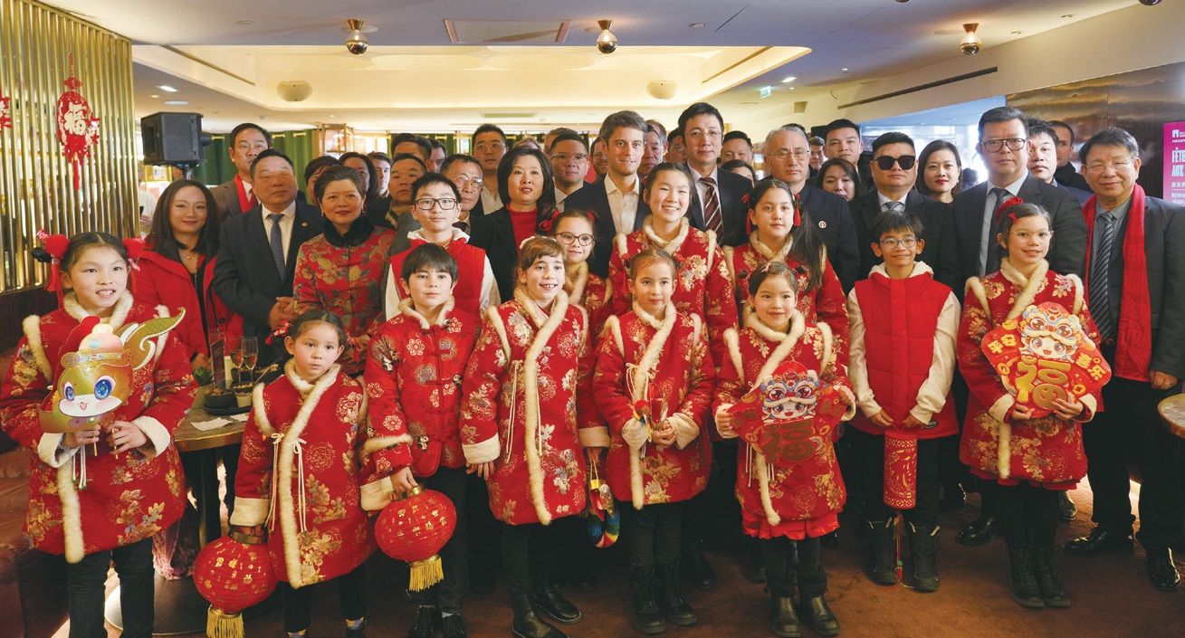 法国前总理阿塔尔(Gabriel Attal)、法国国民议会法中友好小组主席西尔万·马亚尔(Sylvain Maillard)、法国前教育部长安娜·热纳台(Anne Genetet)、中国驻法使馆领侨处主任万磊参赞、法国国民议会法中友好小组代表团、巴黎市议会代表团、来自旅法侨界21个协会的多位侨社代表、法国著名歌手乔伊丝·乔纳森(Joyce Jonathan)等中法嘉宾,以及活动总召集人叶飞燕出席活动。
