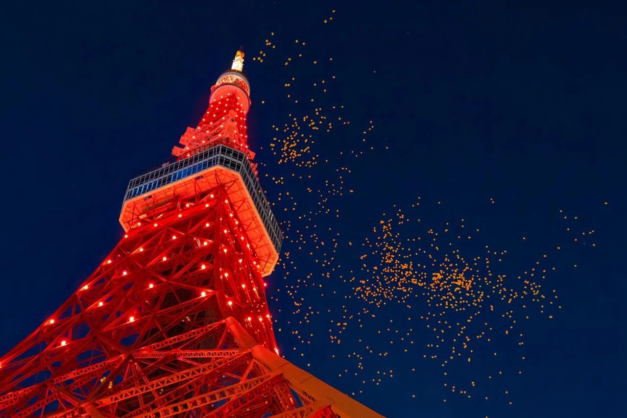 今年的东京塔点亮“中国红”活动上,伴随着200余名儿童合唱《友谊地久天长》的悠扬歌声,2025个印有大熊猫与宝可梦图案的气球缓缓升空,象征友谊的红色灯光点亮东京塔。