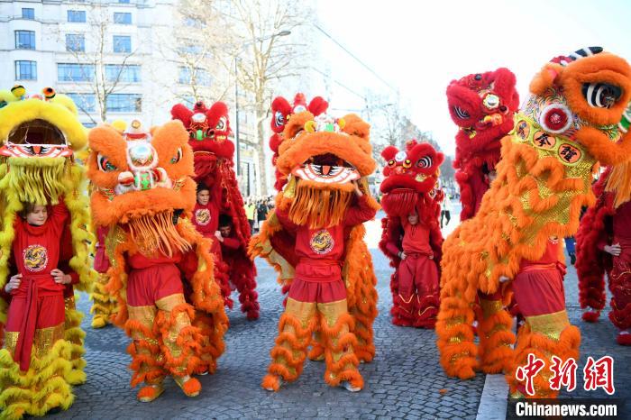 第三届“欢乐春节满巴黎,龙狮贺岁舞香街”春节巡游活动2日在巴黎香榭丽舍大街举行。