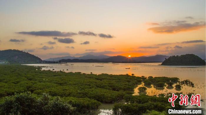 夕阳下的台山镇海湾。(图片来源:广东省林业局供图)