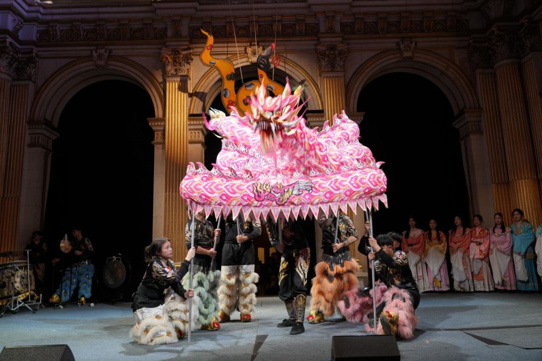 醒狮点睛仪式后,现场还进行了精彩的舞龙和歌舞表演。