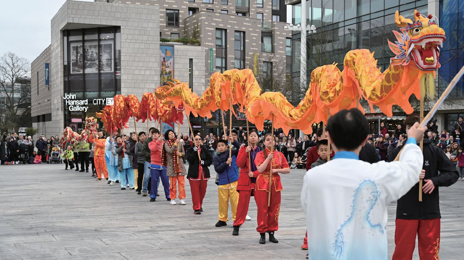 在Westquay商场,南安普敦市长大卫·希尔德(David Shield)、南安大学孔子学院院长郑英、南安普敦华人协会会长黄嵩钧博士、警察代表以及南安大学代表纷纷登台,送上真挚的新春祝福。现场演出涵盖舞龙舞狮、武术表演、中国鼓、传统舞蹈、民乐演奏等节目,展现中华文化的多元风采。