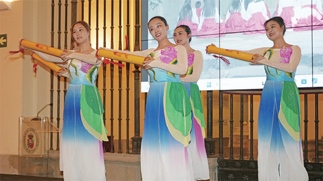 此外,马德里雪竹乐行剧团带来了中国传统民乐演奏,竹笛、洞箫、古筝等乐器交织出悠扬的旋律,将现场观众带入东方音乐的意境之中。