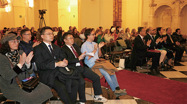 当晚的文化演出以一场视听盛宴拉开帷幕。托莱多孔子学院西方院长海梅·莫拉莱达(Jaime Moraleda)在致辞中提到,“celebrar”(庆祝)一词在塞巴斯蒂安1611年编写的《西班牙语辞典》中有三重涵义: